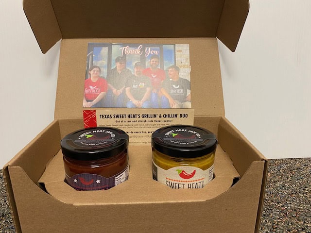 You’ll love this NEW box of deliciousness from our friends at Sweet Heat Jam Co. Inside each box you will find a 10 oz. jar of Totally Texas BBQ Sauce and a 10 oz. jar of Sweet Heat Mustard. Makes a great gift for the grill master in your life!